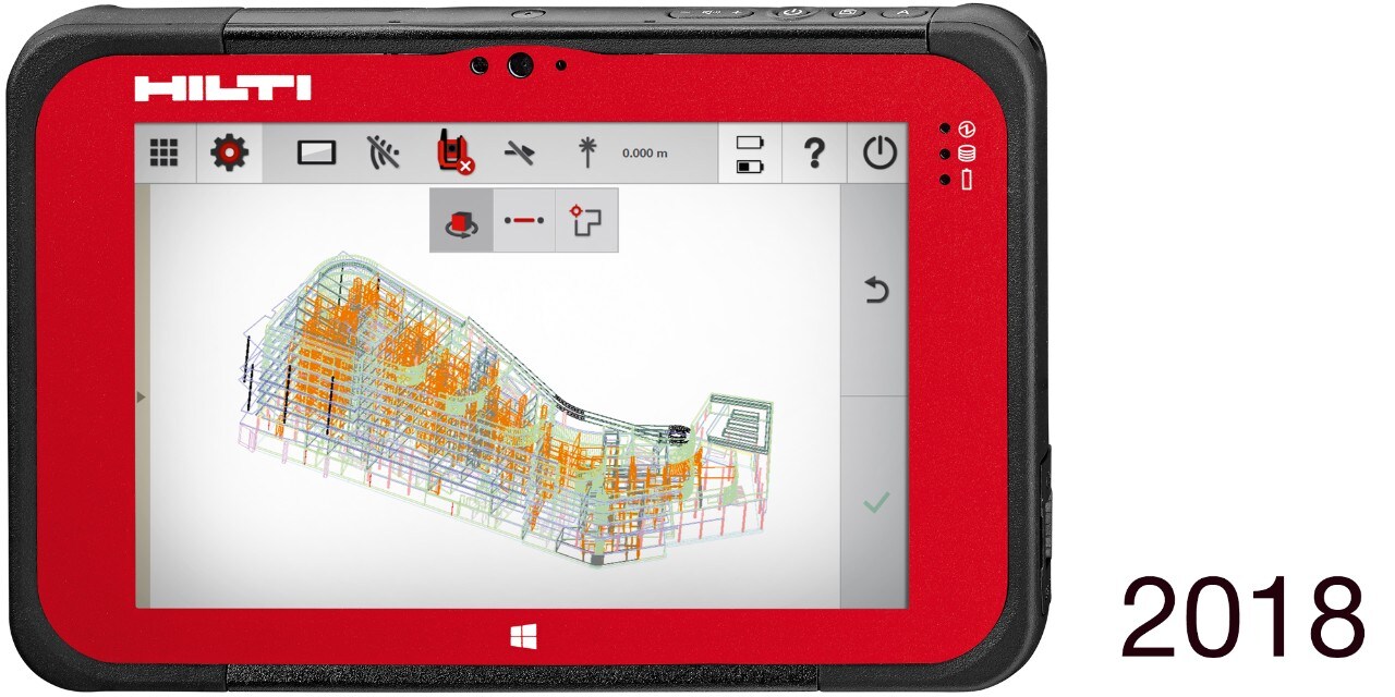Abhilfe schafft hier die Nutzung von Hilti Totalstationen oder Tachymeter. Sie ziehen sich die Daten aus dem BIM Modell: Wählt der Nutzer aus dem digitalen Plan auf dem Tablet ein Absteckelement aus – einen Absteckpunkt, eine Bauachse oder einen Bogen – führt das Tablet ihn ganz wie ein „Navigationssystem“ exakt zur geplanten Position auf der Baustelle.
